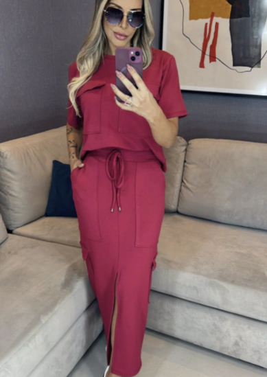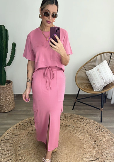 O Conjunto Bárbara é ideal para mulheres que querem unir conforto e estilo na rotina. Com tecido moletinho premium e caimento leve, ele entrega um look casual chic com praticidade, graças aos bolsos utilitários e fenda que alonga a silhueta. Perfeito como conjunto comfy feminino para usar do P ao GG.